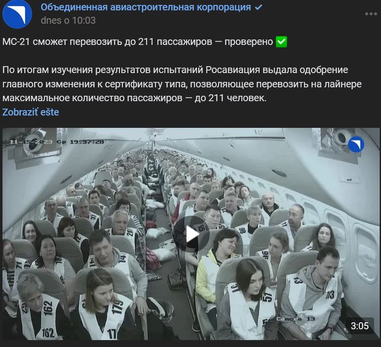 ↑ Špecialisti spoločnosti Jakovlev (Яковлев) v rámci certifikačného programu vykonali pozemné testy núdzovej evakuácie cestujúcich a členov posádky lietadla MC-21 (МС-21). Podelíme sa s vami o exkluzívne zábery z príprav na testy a čoskoro vám prezradíme, ako sa skončili!