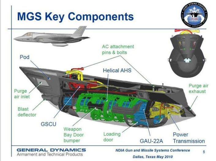 F-35B vybavenou 25 mm závěsným kanónem GAU-22 / A vyrobenou německou společnosti Rheinmetall