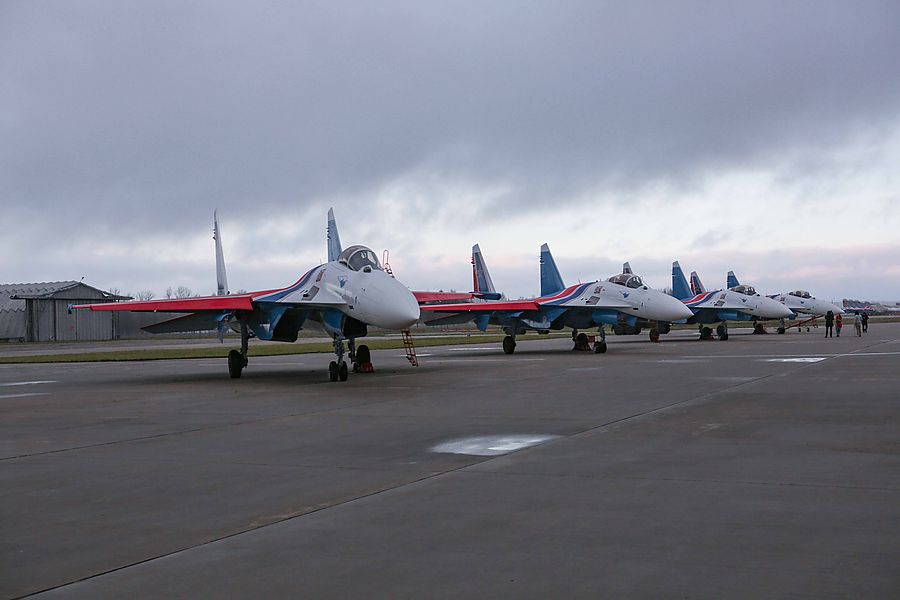Ide o klasicky vybavené sériové lietadlá Suchoj Su-35S, iba je kamufláž vo farbe akrobatickej skupiny