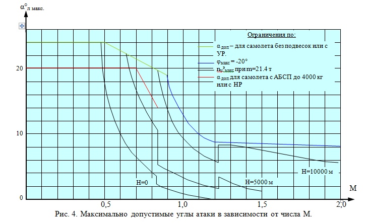 Характеристики устойчивости и управляемости самолета без подвесок и со всеми вариантами ракетного вооружения сохраняются приемлемыми до углов атаки: