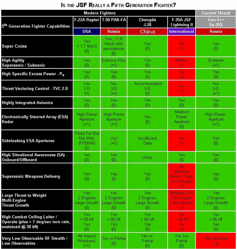 „Pokud byste se měli zapojit s F-35 řekněme, do souboje ve vizuální vzdálenosti,“ začal brigádní generál US Air Force Scott Pleus, „jsou schopnosti F-35 jsou naprosto jinde ve srovnání s letadly čtvrté generace.“
