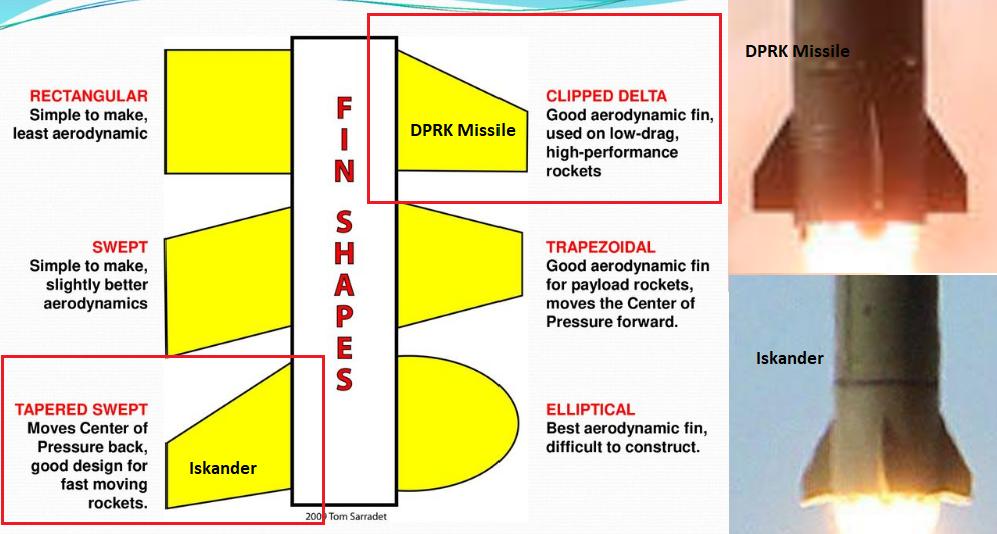 Pokud si vzpomínám, "jihokorejec" byl vyvíjen za účasti ruských firem, takže se dá očekávat, že je to v mnohém přímý analogon Iskanderu, včetně aerodynamického řešení - mně připadá tvar těch raket "poněkud stejný" (jistě ne přímo totožný, ale), soudě z více fotografií... Kdesi se před časem psalo, že Rusáci díky tomuto projektu (a dalším, protože tohle není jediný ruský raketový desing, přejatý jižními Korejci) získali na oplátku mnoho věcí hlavně z oblasti čidel a elektroniky...