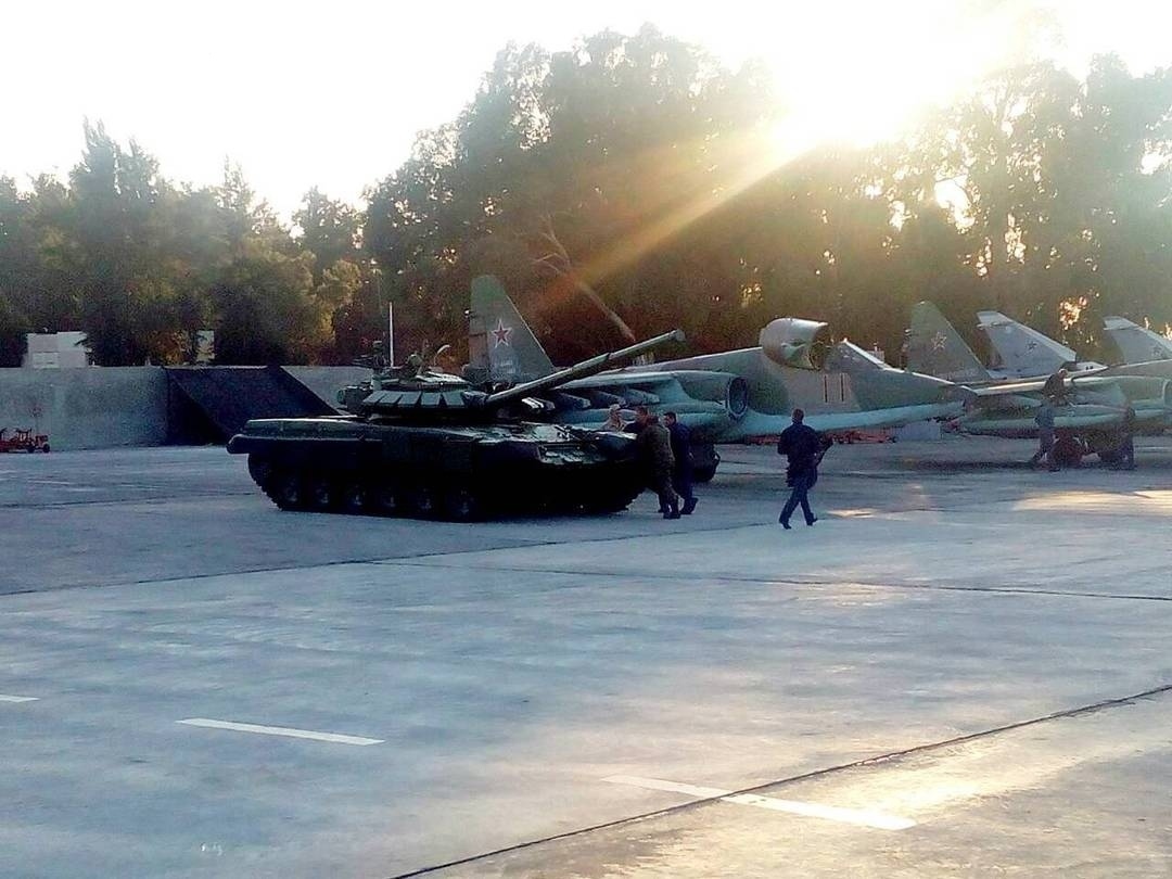 T-72B3 a Su-25 na leteckej základni Hmejmim Zdroj https://glav.su/blog/37155/1339235/ z 17.10.2018