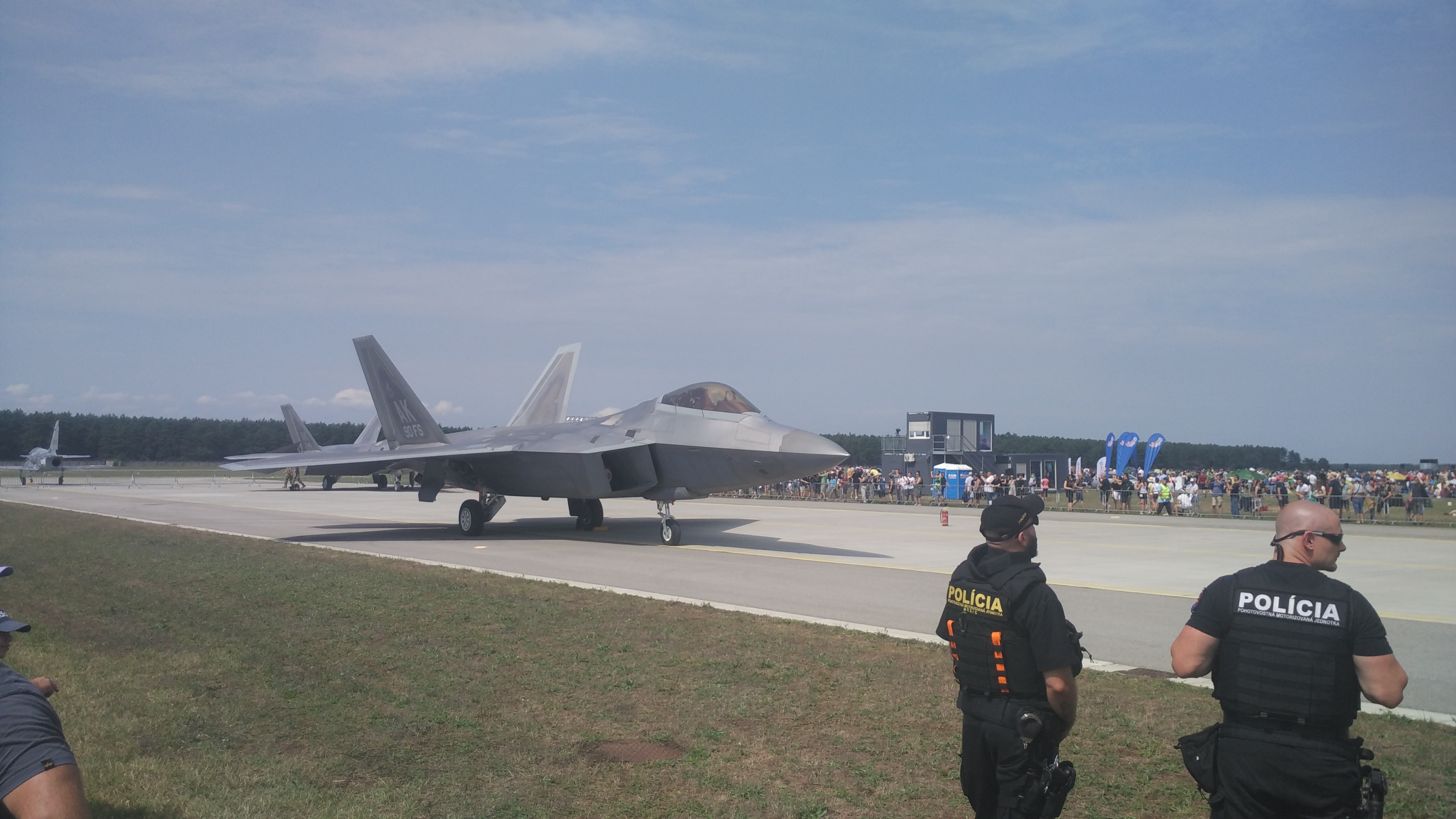 Prileteli dva F-22 Raptor, urobili niekoľko preletov, pristáli a do večera boli postavené na statickej ukážke za ohradou s 10 metrovým odstupom. Môžeme ďakovať za to privilegium pretože v Nemecku boli vo vzdialenosti 20 metrov od ohrady, takže sme na tom 2x lepšie ako nemci. Prileteli len na sobotu a odleteli.