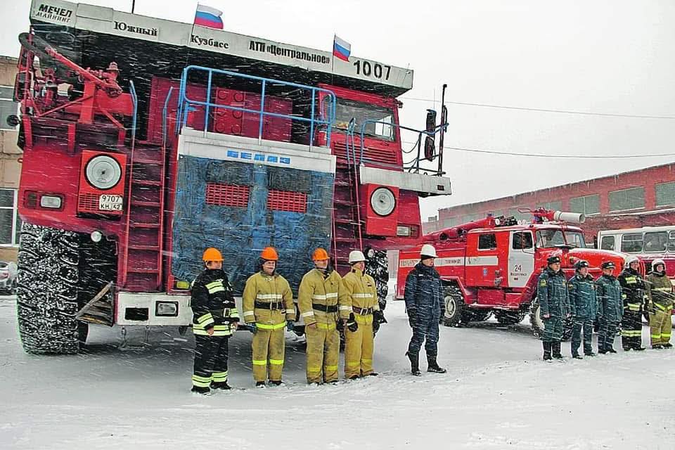 Důlní hasiči v Kuzněcké pánvi. Vozidlo má 60 000 litrů vody.