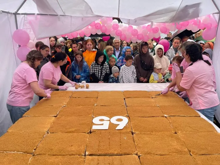 Ve Verchňaja Pyšma (Sverdlovská oblast) se pekl největší medový koláč v historii Uralu - koláč o rozměrech 2 x 2 metry a hmotnosti 100 kilogramů. Fotografie obřího dezertu byly zveřejněny na sociálních sítích.