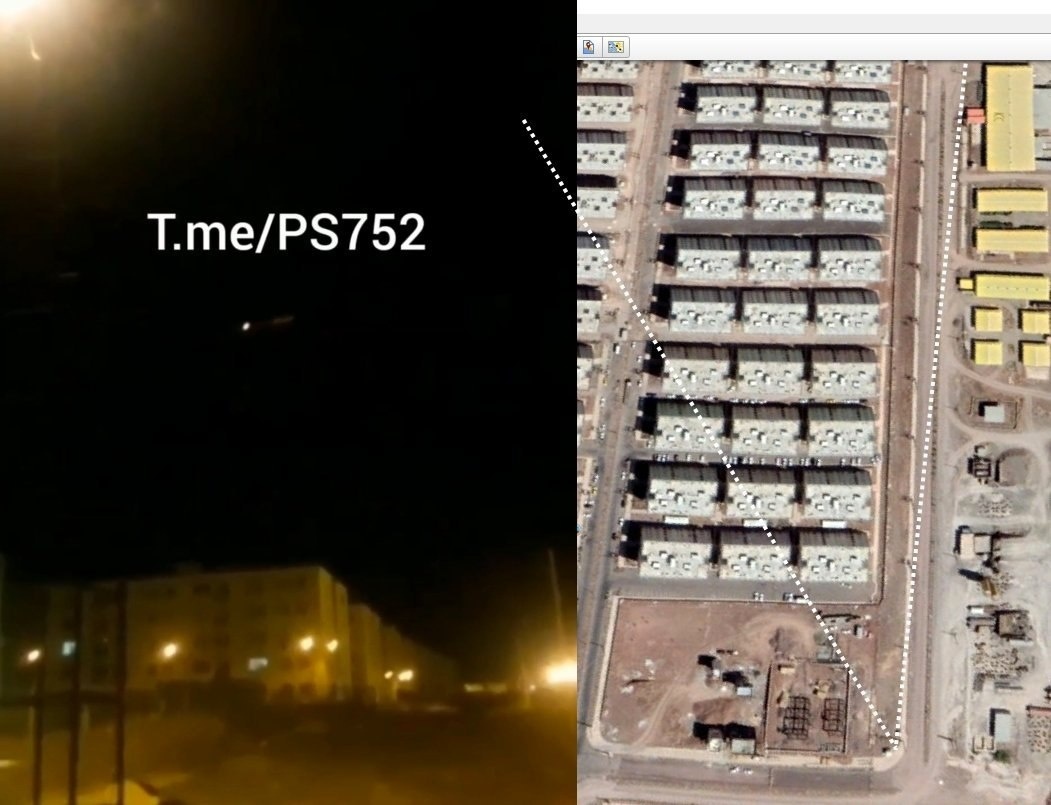 Geo-referenční fotografie údajně íránské rakety, která zasáhla ukrajinské letadlo.