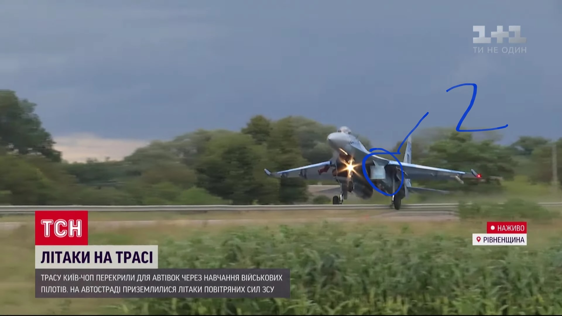 Shodou okolností jsem po této dálnici (renovovaná / vybudovaná pro ME 2012) před několika lety jel, a mohu potvrdit, že ani na Ukrajině nedávají značky doprostřed silnice = vůbec netuším, co ten pilot dělal, že smetl značku nasávákem, který je MEZI podvozkovými nohami ???