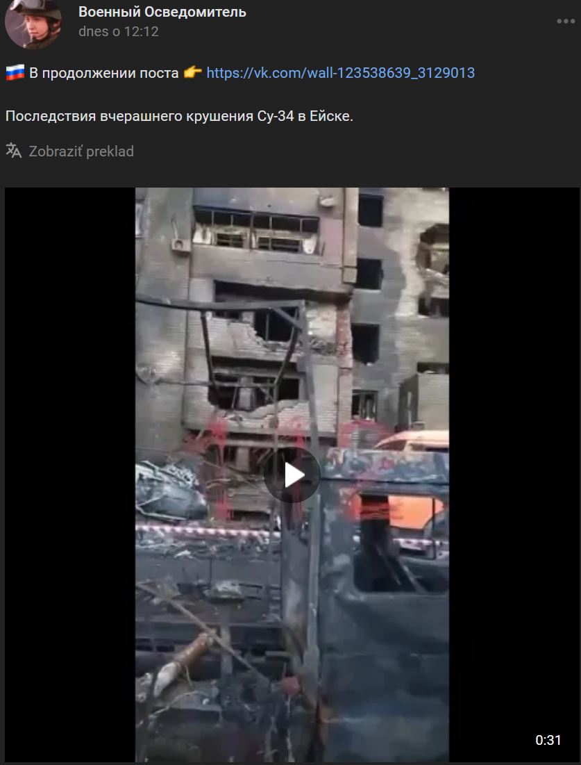 Prehľad správ https://tass.ru/padenie-su-34-v-eyske k 20:15 hod: