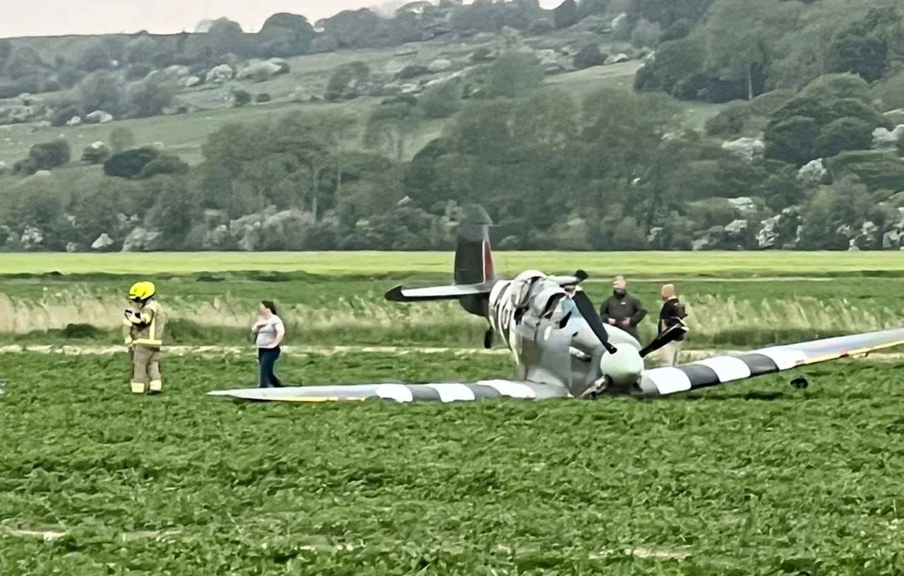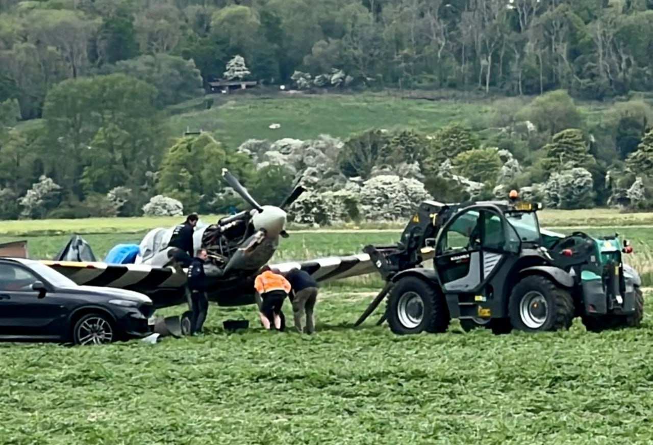 Fly a Spitfire povedal: „Hovorili sme s pilotom, ktorý oznámil, že preventívne pristál na mieste mimo letiska.“