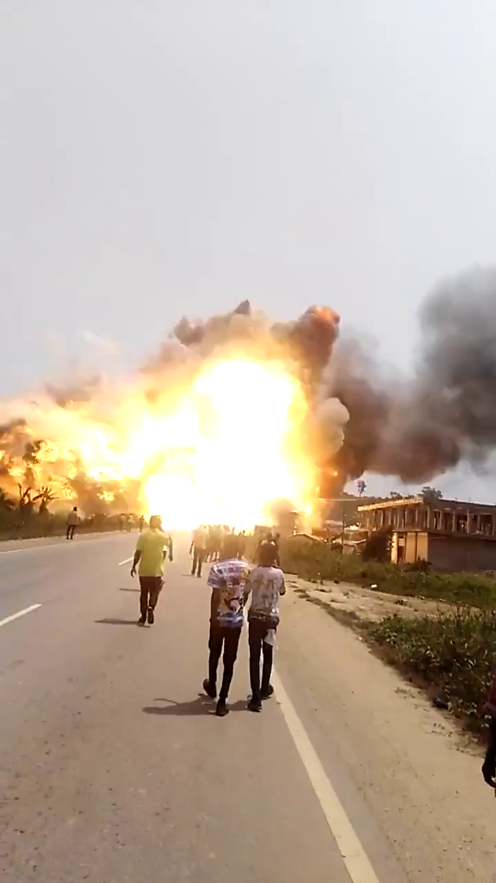 ↑ Samotný výbuch po požiari nákladného auta naloženého výbušninami: