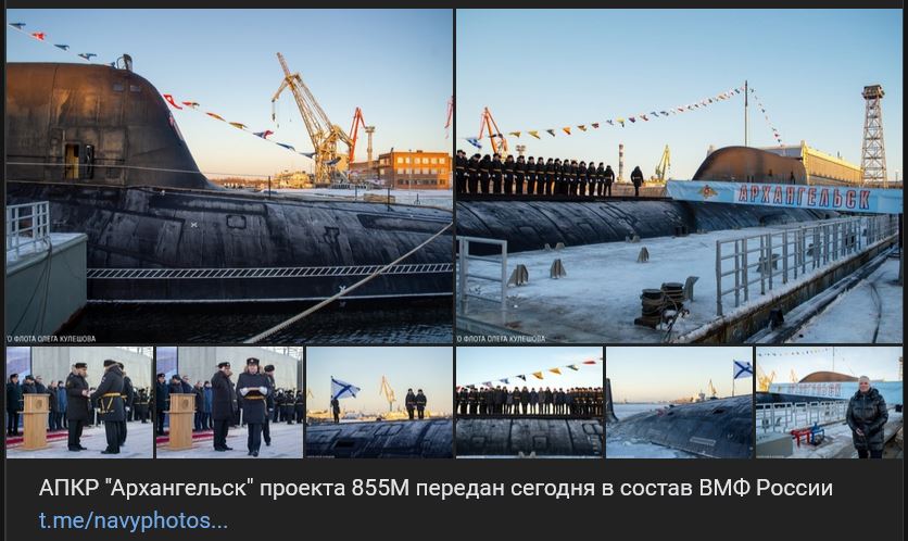 APKR "Archangeľsk" projektu 855M bola v piatok 27.12.2024 zaradená do zostavy VMF Ruska Zdroj https://vk.com/wall-104764077_543167 z 30.12.2024
