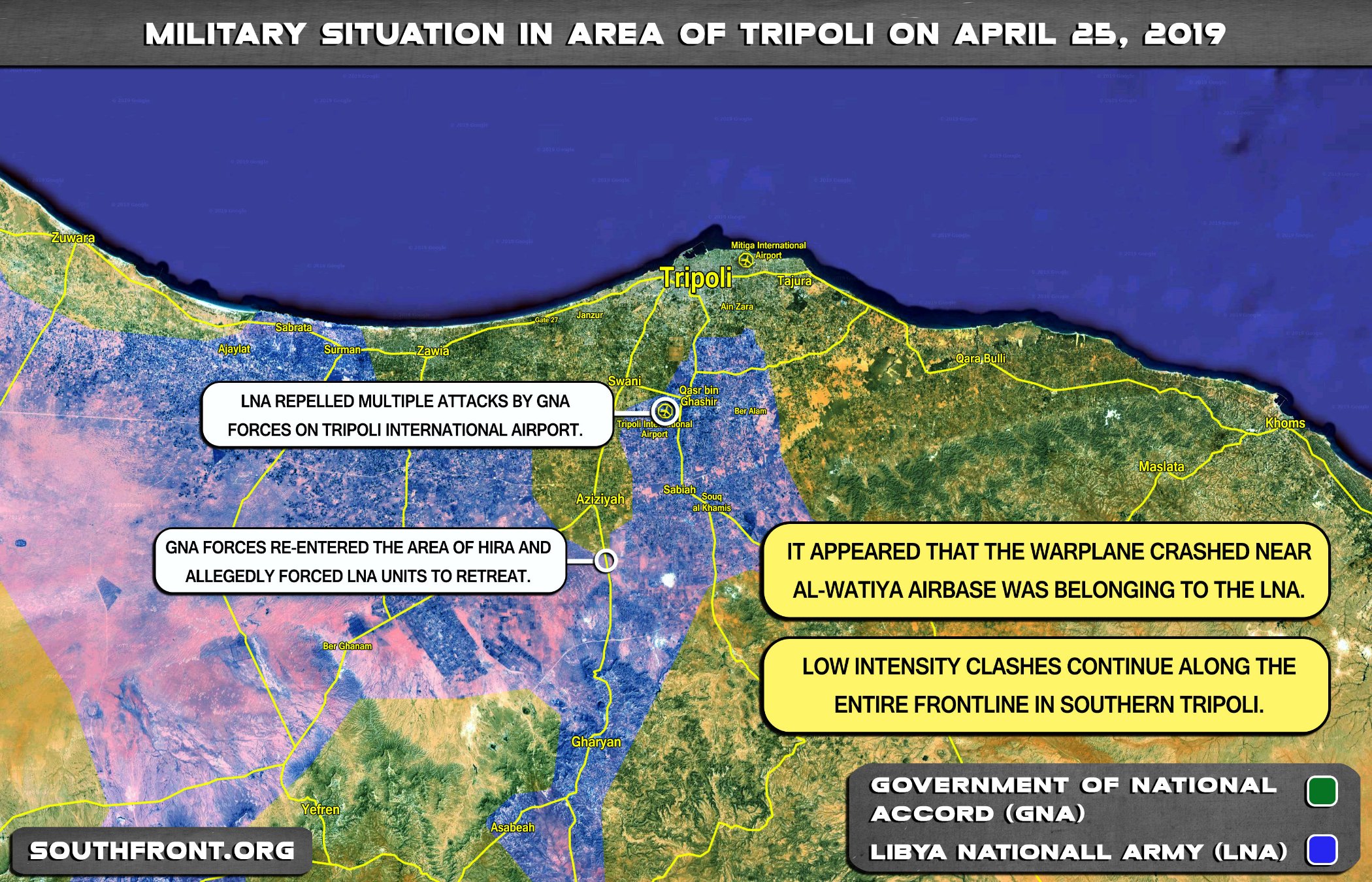 - Srážky nízké intenzity pokračují po celé frontě v jižním Tripolisu. https://southfront.org/map-update-milit ... l-25-2019/