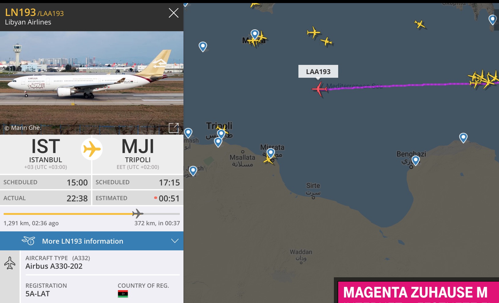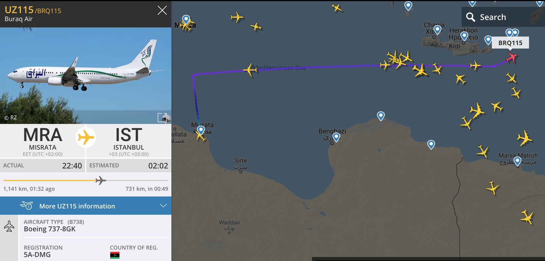 Letecký provoz mezi GNA Misruatou a Tripolisem a Istanbul dnes v noci.