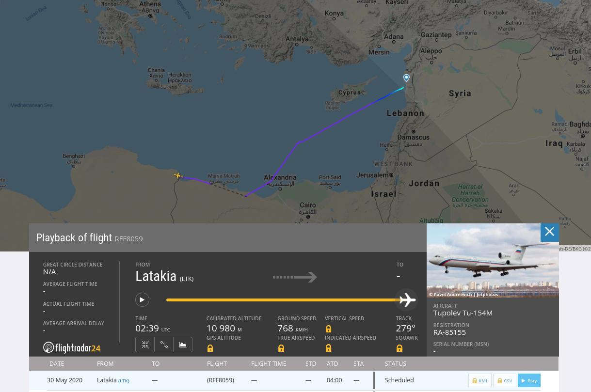 Tu-154M RA-85155 dnes v noci přelétl z Hmímimu do Libye - jen hodinu poté, co doletěl z Čkalova přes Turecko