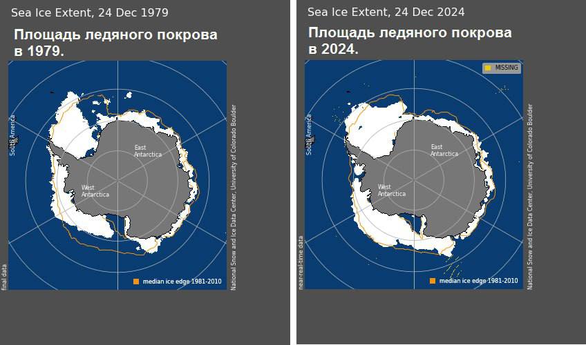 V prosinci 2024 byl rozsah antarktického mořského ledu o 17 % VĚTŠÍ než v roce 1979.
