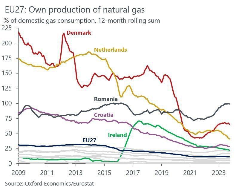 Rumunsko se stalo největším producentem plynu v EU v absolutních číslech. EU snížila svou produkci plynu z více než 30 % spotřeby v roce 2010 na 10 % v letošním roce.