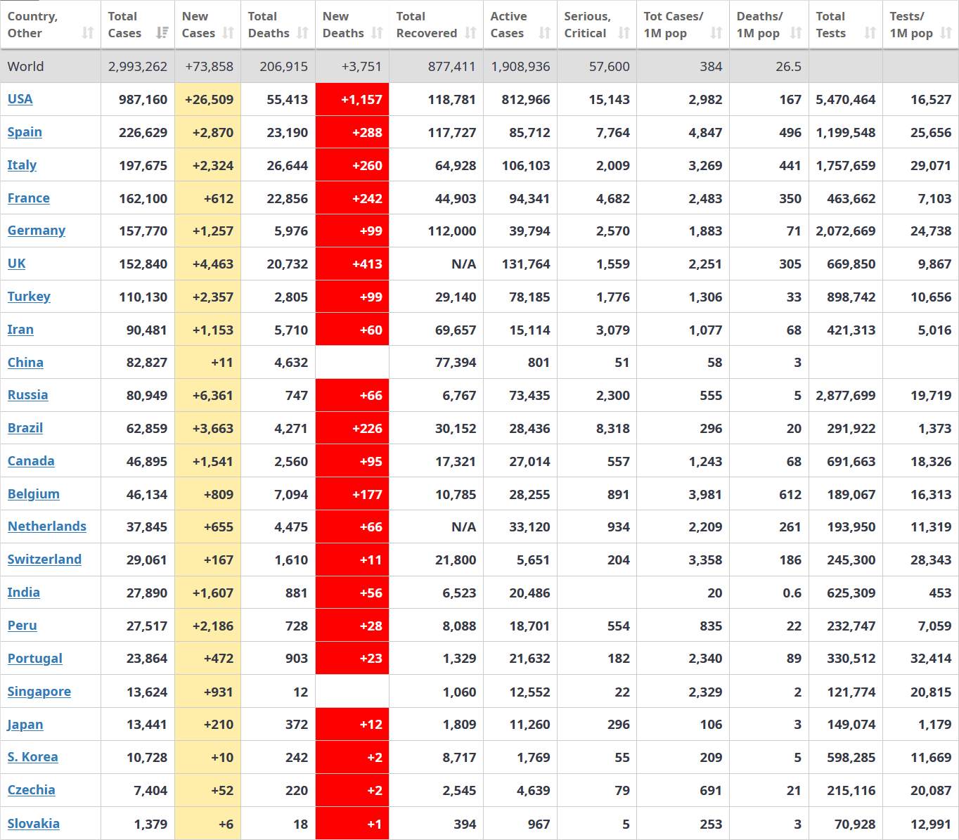 Za povšimnutie stoja obrovské (5000+) prírastky počtu chorých v Rusku v posledných dňoch. Zvlášť to vynikne po predchádzajúcich relatívne veľmi malých prírastkoch.