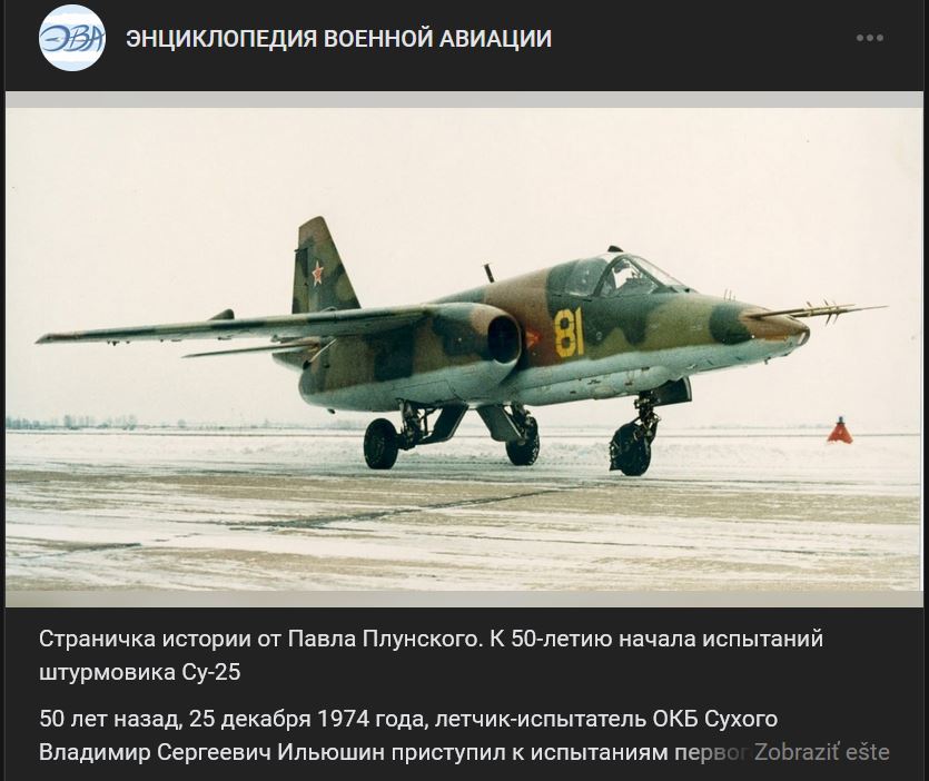 25.12.1974 = pred 50-timi rokmi pilot OKB Suchoj Vladimir Sergejevič Iľjušin (Владимир Сергеевич Ильюшин) prvý krát vzlietol s prototypom lietadla T8-1, neskôr označovaného ako Suchoj Su-25 (Су-25)