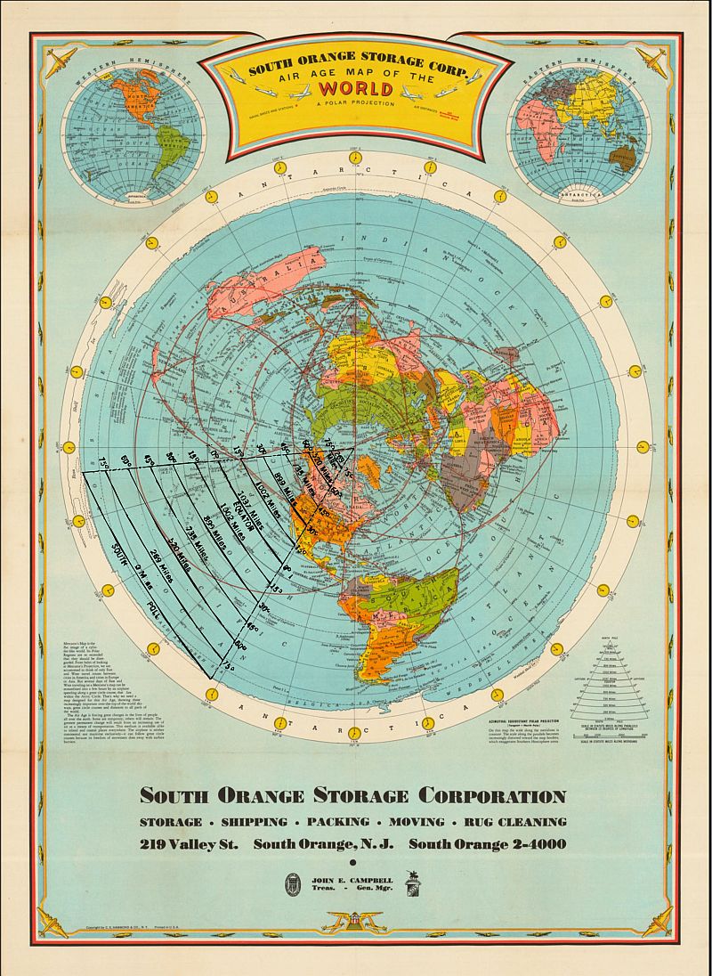 veľmi podobná mapa - Air Age Map of the World z roku 1938