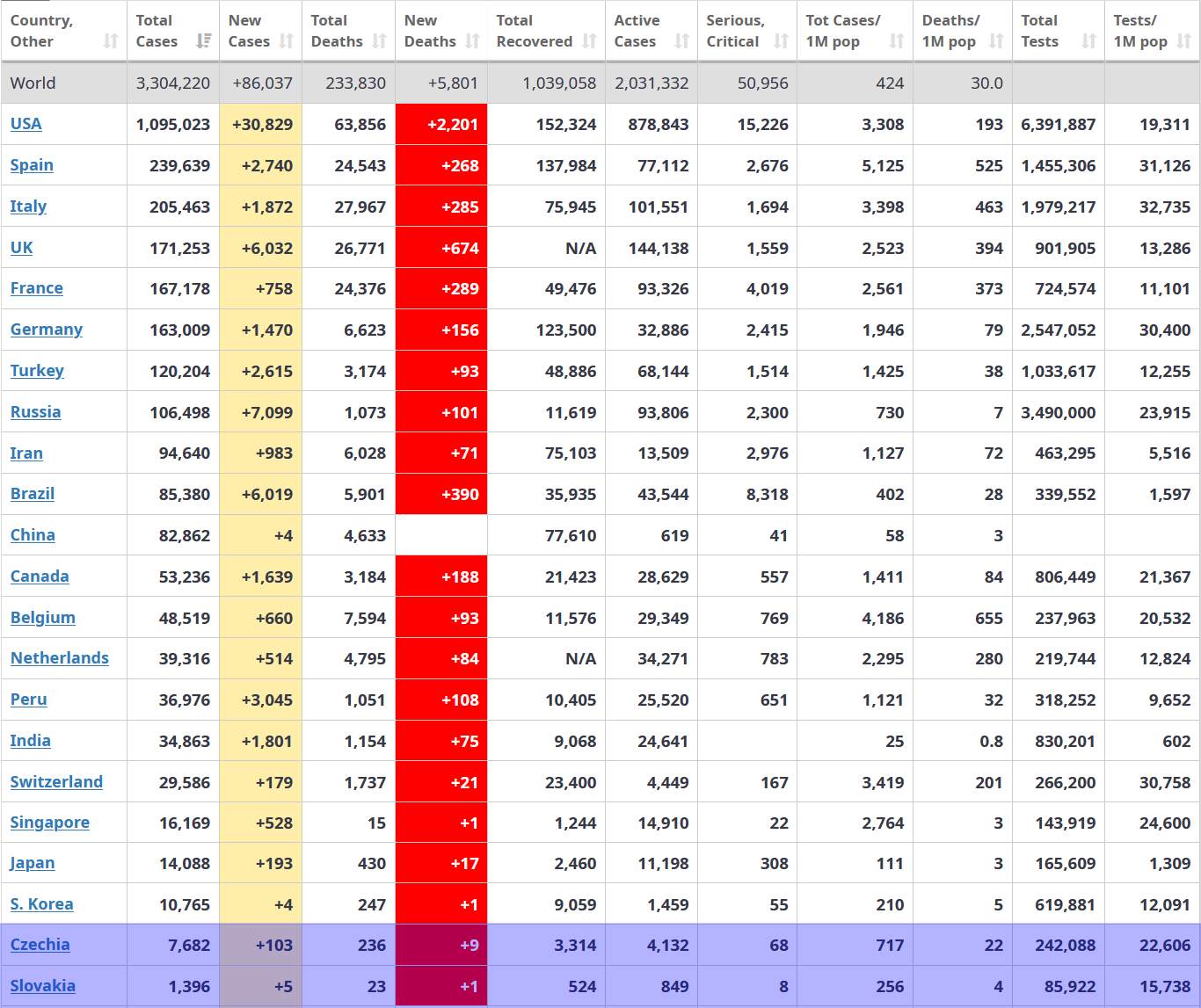 Čo dodať - čísla z Japonska si môžete pozrieť o príspevok vyššie. Počet testovaných a počet testov na milion obyvateľov zodpovedá skôr rozvojovým krajinám - s 1377 testami na milion Japonsko zaostáva za Jamaikou, Braziliou a Paraguayom a je pred Argentinou, Fiji, Sri Lankou a Marokom. V celkom počte testov (174 000) je za Rumunskom, Pakistanom, Thajskom z jednej strany a pred Norskom, Malajzijou a HongKongom z druhej strany. Ale Japonsko je 126 milionová krajina...Japonsko bylo v začátcích pandemie covid-19 státem, který se udával jako příklad. Na konci března i zde začal počet nakažených růst, avšak navzdory o poznání volnějším opatřením oproti řadě jiných zemí se drží počty nakažených i zemřelých relativně nízko. Dosavadní úspěch tkví zřejmě zčásti v tom, že se Japonci místo podání ruky zdraví úklonou a jsou zvyklí nosit roušky. Hlavně ale vláda zvolila přístup, při němž opatření směřují hlavně do konkrétní postižené oblasti k vytipování osob, které chorobu roznášejí. I nyní ale zaznívají obavy z toho, zda se onemocnění nerozšíří, mimo jiné proto, že v provozu zůstaly restaurace či veřejné lázně a hustota obyvatel se přes den na některých místech nijak neliší od normálu. Obavy vzbuzuje také to, že 80 procent kapacit nemocnic v některých oblastech je vytížených a mnohde se nedostává ochranných pomůcek.