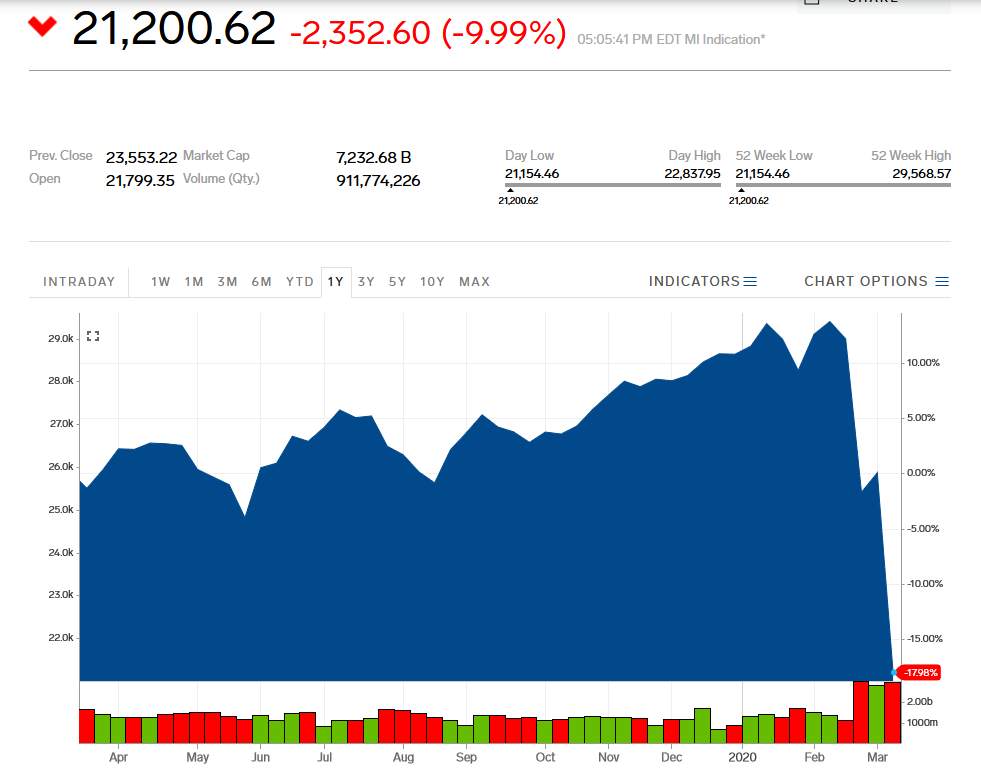 The Dow plunged into a bear market in just 20 days — the fastest 20% drop in history