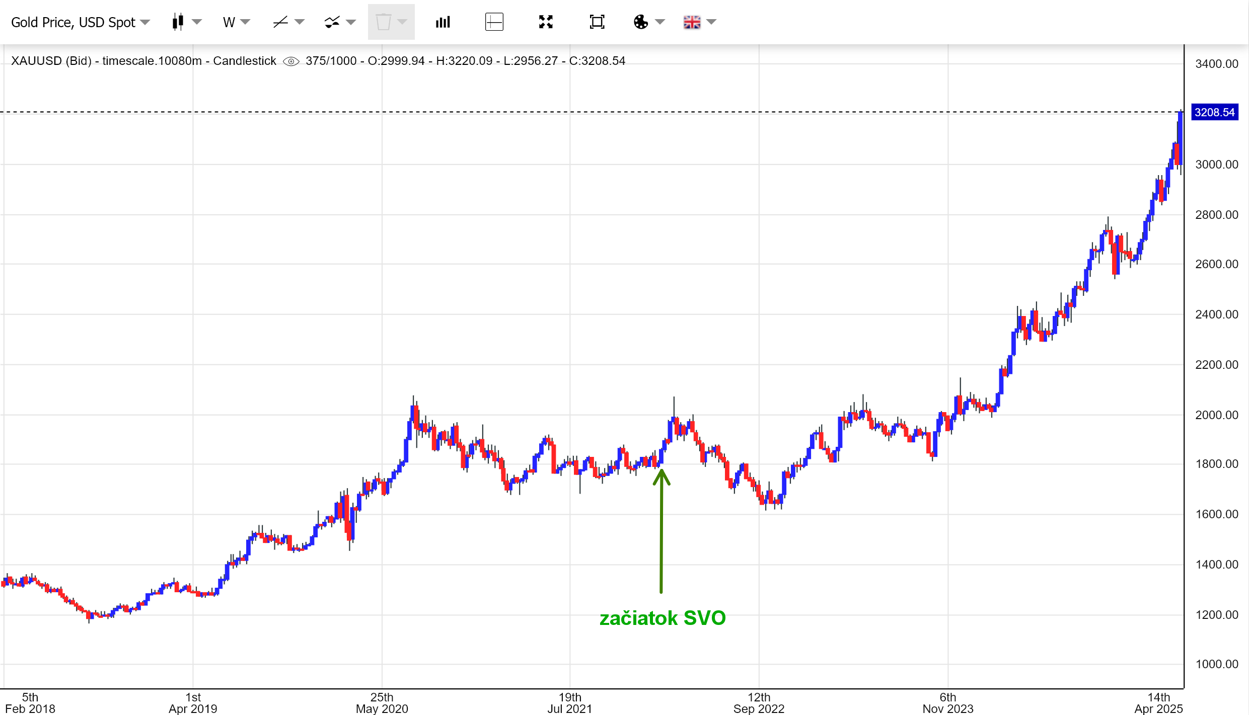 "Úroveň obav na trhu se zvýšila před oznámením odvetných amerických cel, což udržuje zlato na vysoké úrovni jako ochranný nástroj," - říká Tim Waterer, hlavní analytik společnosti KCM Trade.