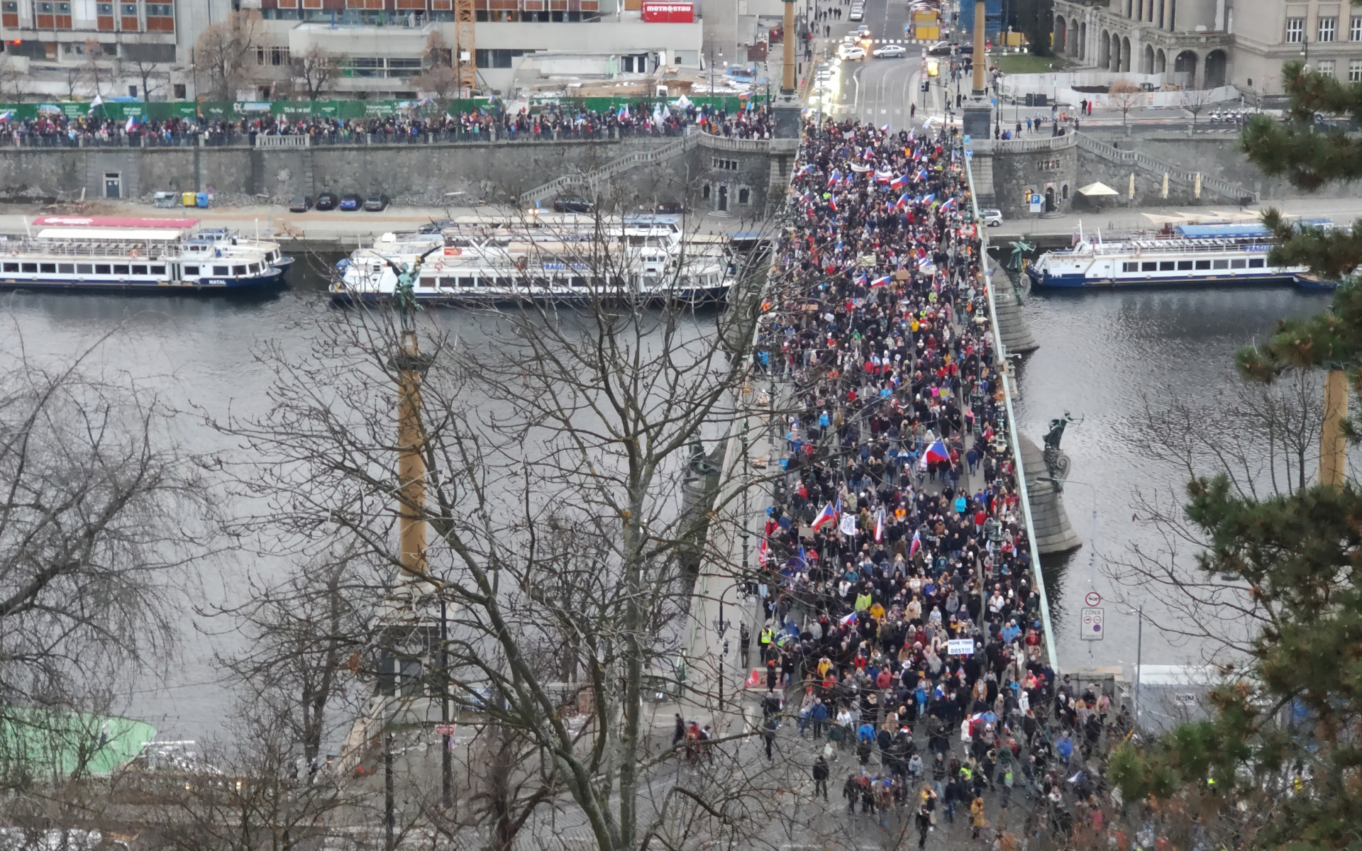 Po 15:00 se demonstranti vydali na pochod z Václavského náměstí. Měli by mířit k sídlu úřadu vlády ve Strakově akademii a odtud na Hradčany. Z pochodujícího davu zněla hesla jako „Máme toho dost!“ nebo „Vojtěchu do lochu!“ Průvod skončil zpěvem hymny na Hradčanském náměstí.