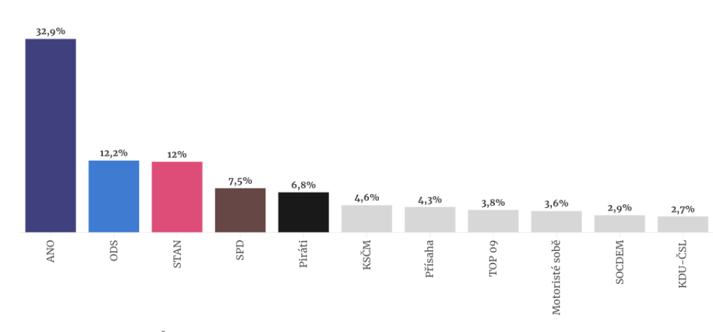Hnutí ANO a Starostům preference ve srovnání s výsledky srpnového modelu vzrostly o půl, respektive 1,5 procentního bodu. Občanští demokraté, Piráti a SPD naopak ztráceli. Pirátům by v září dalo hlas 8,5 procenta voličů, o procentní bod méně než v srpnu. ODS si pohoršila o 1,5 procentního bodu a SPD klesla podpora o čtyři procentní body na sedm procent.
