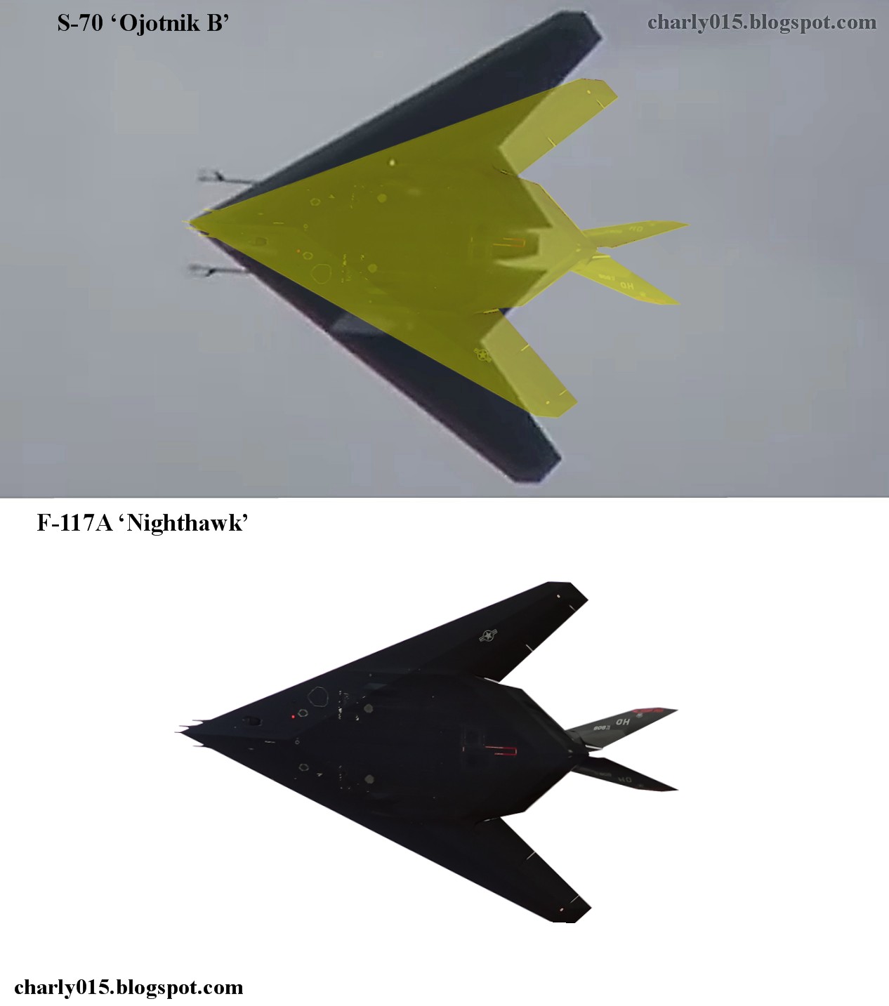 Grafické porovnanie šípovosti krídel Suchoj S-70 Ochotnik B