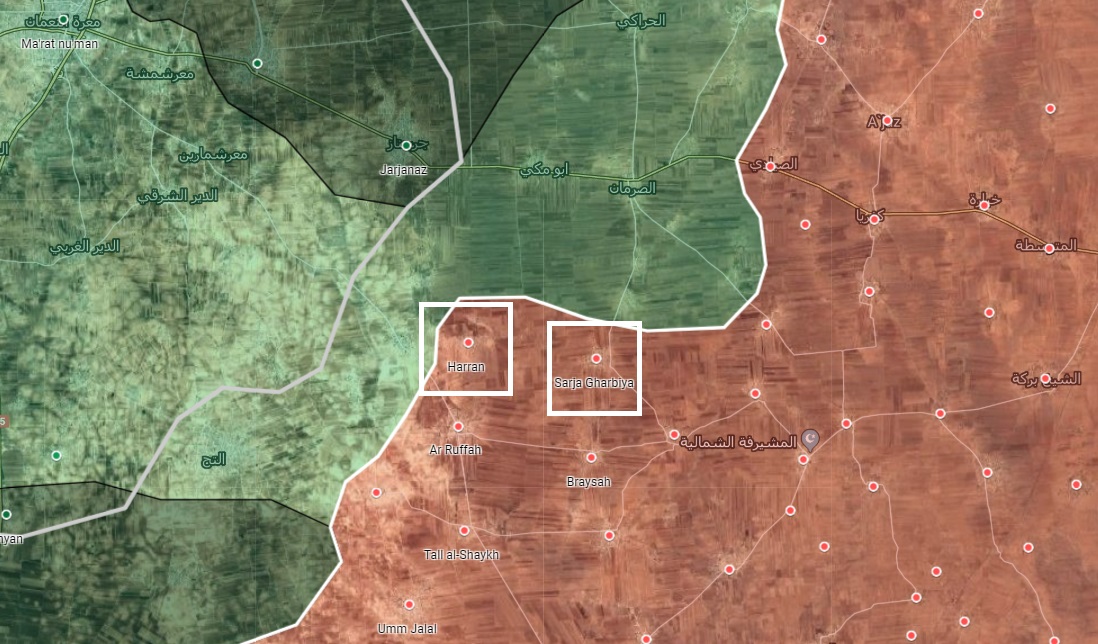 Podľa provládnych zdrojov armádne jednotky získali mestá Harran a Sarja Gharbuya od Hay -at Tahrir al-Sham (HTS) pridruženého k al-Káide a jej spojencov. Niekoľko leteckých úderov zničilo pozície teroristických skupín vo vnútri oboch miest. Ruské vzdušné sily a sýrske arabské vzdušné sily (SyAAF) podporujú desiatkami leteckých útokov prebiehajúci útok na SAA na juhovýchode Idlibu.