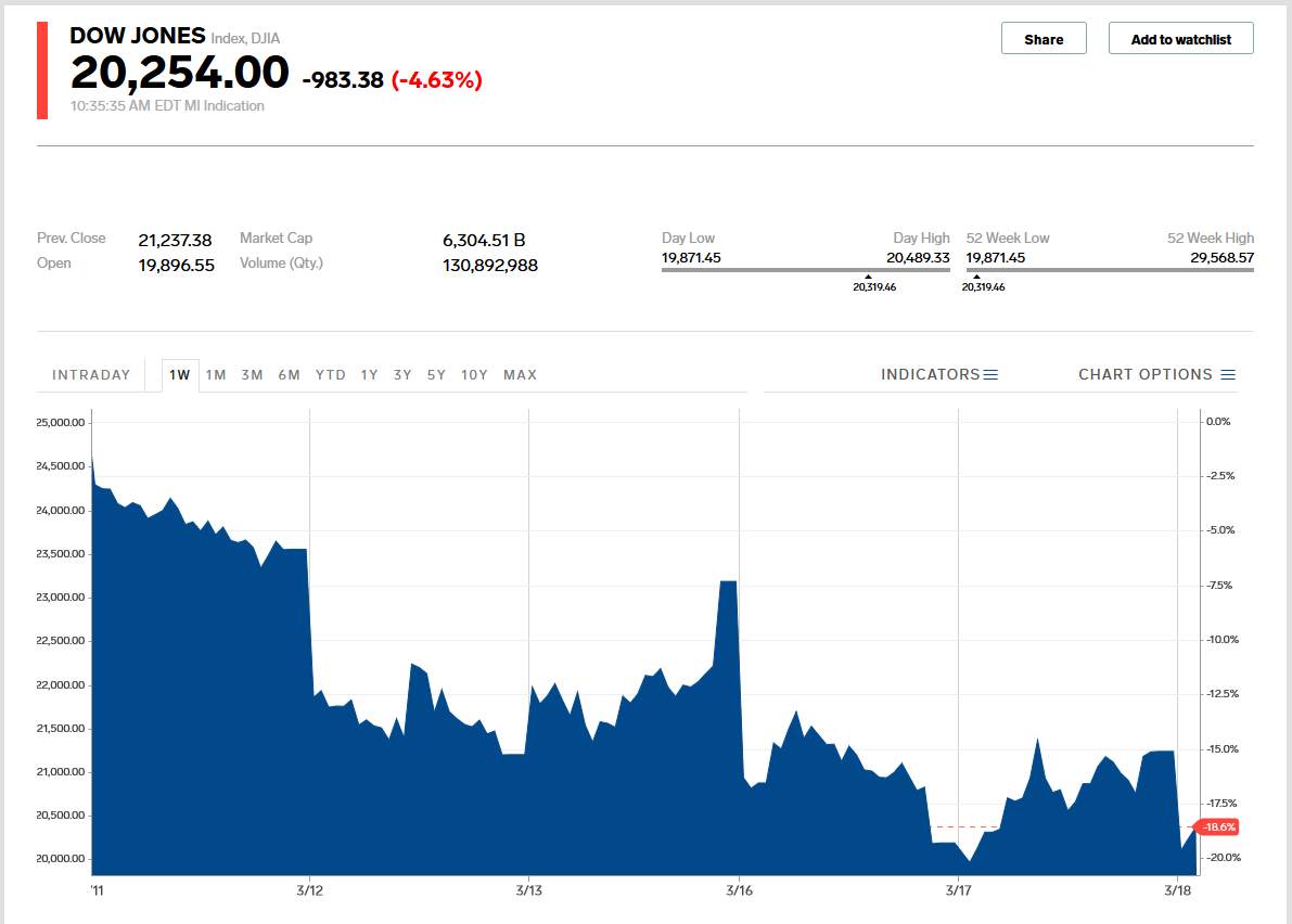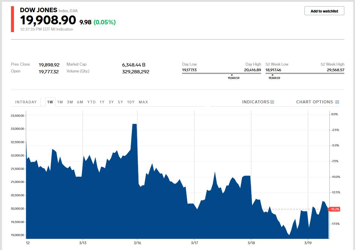 za 37 dní (od 12.2.2020) stratil DJ do včera (20.3.2020) toľko ako získal za 39 mesiacov a 18 dní od 2.12.2016...