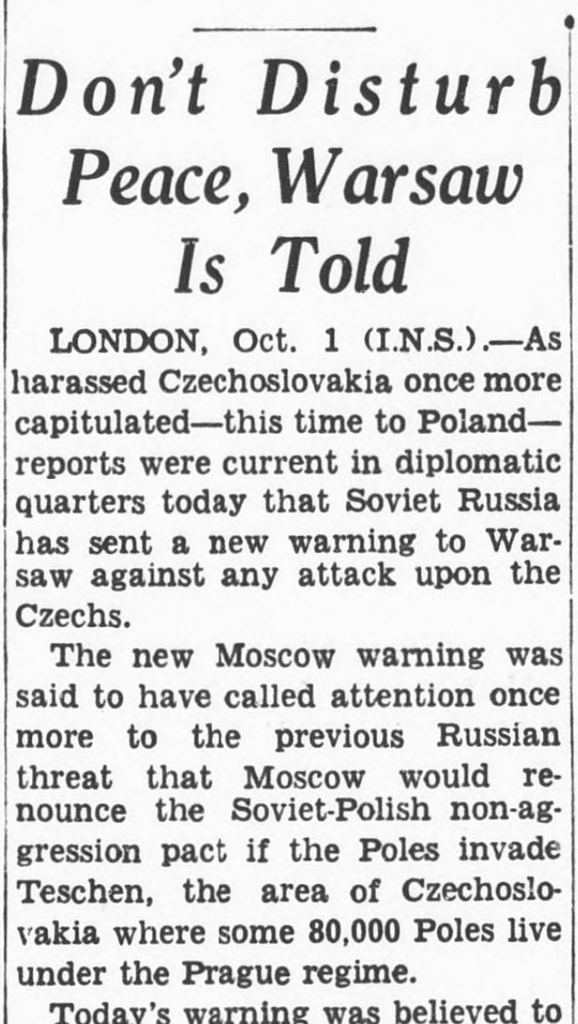 Současně, jak už tu napsal tomaspetr, varoval SSSR Polsko, že pokud se do války vloží na straně Německa (a to Polsko chtělo a v roce 1939 to i udělalo), tak bude považovat smlouvu o neútočení za neplatnou ... jinými slovy, že na Polsko zaútočí a vezme si zpět okupovaná území.