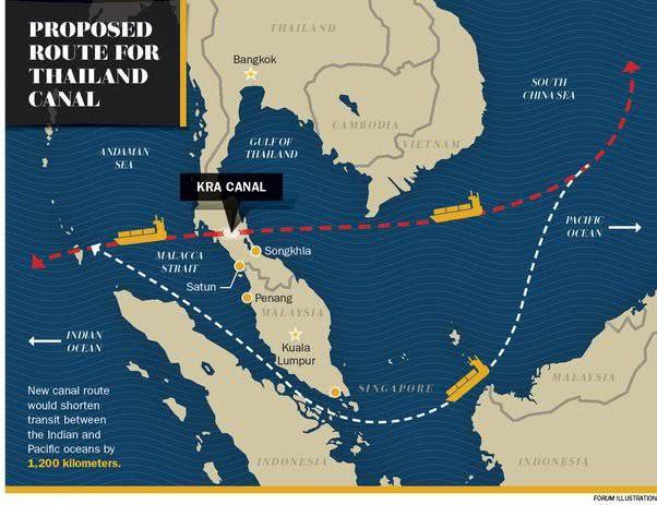 Čína vybuduje průplav do jižního Thajska, aby zajistila energetickou a obchodní bezpečnost. Čína je v současné době závislá na Malackém průlivu a sebemenší přetížení tohoto průlivu je na úrovni, která by mohla vážně ovlivnit čínskou ekonomiku.