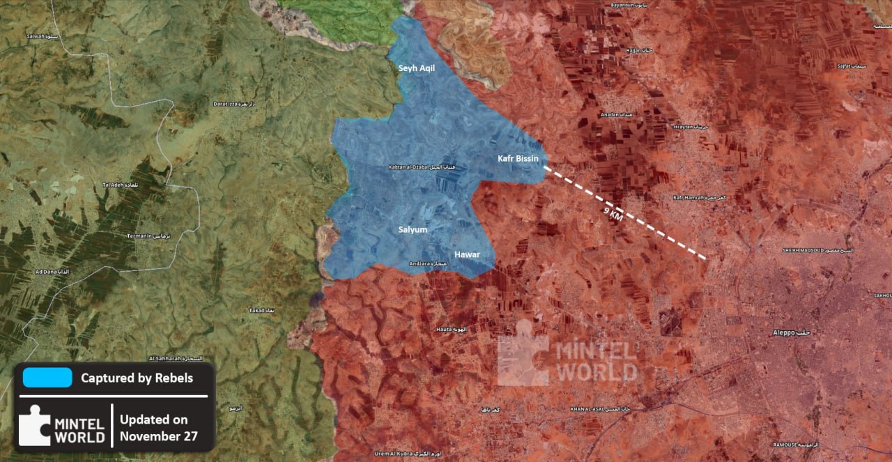 ▪️ Gangy HTS a FSA tvrdia, že sa im podarilo obsadiť niekoľko dedín a priblížiť sa k Aleppu na vzdialenosť približne 9 kilometrov.
