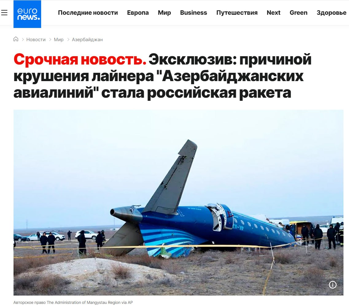 Európske spravodajstvo Euronews a azerbajdžanský Kaliber s odvolaním sa na výsledky predbežného vyšetrovania "vládnych zdrojov" tvrdia, že lietadlo Embraer E190 spoločnosti Azerbaijan Airlines bolo napadnuté ruskou raketou zem-vzduch, keď sa blížilo ku Groznému.