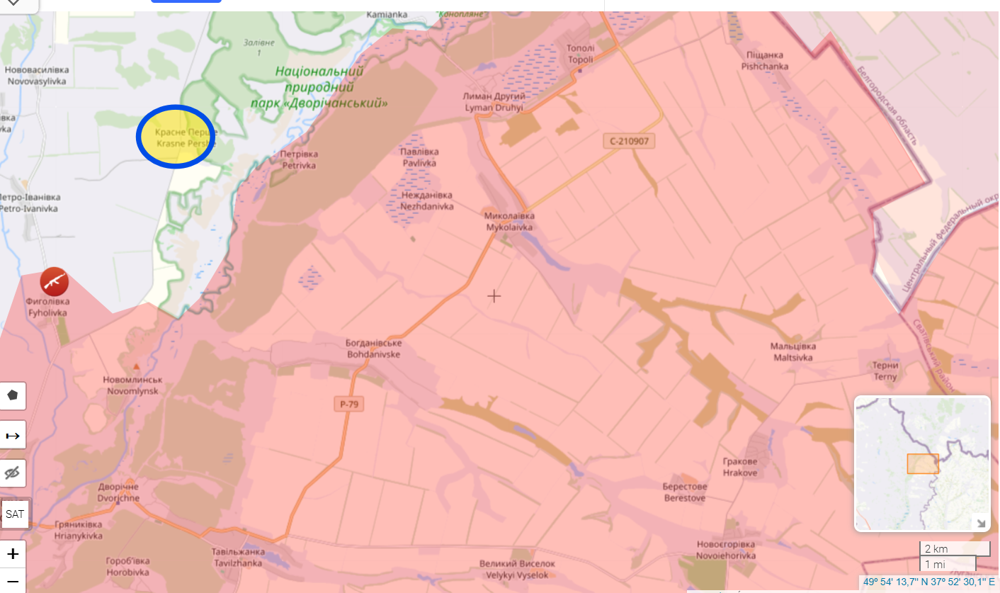 Ozbrojené síly RF aktivně vyvíjejí tlak na Yampolivku, postupují na Terny a ve skutečnosti osadu zcela dobývají, píše ukrajinský zdroj DeepState, který pracuje na Hlavním ředitelství rozvědky Ukrajiny.