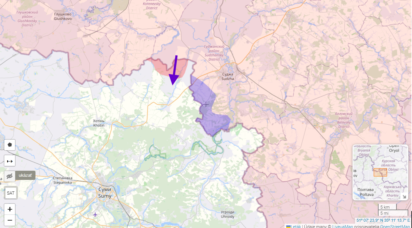 Ruské ozbrojené sily prerazili hranicu a získavajú hlbšie postavenie od Žuravky v Sumskej oblasti po kontrolný bod Sudža v Kurskej oblasti, uvádza zdroj DS, ktorý pracuje pre GUR.