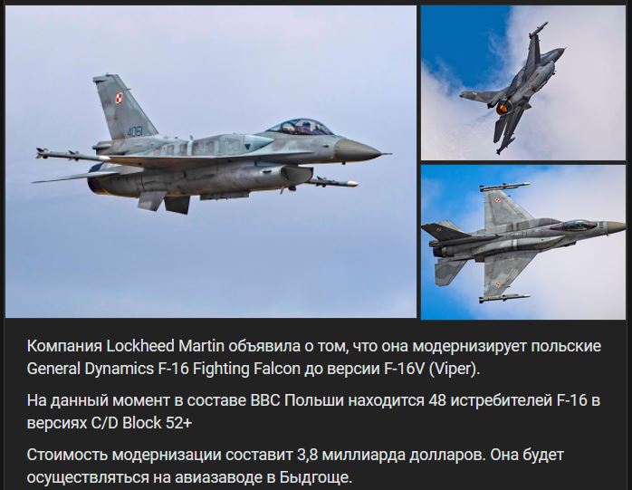Spoločnosť Lockheed Martin oznámila, že zmodernizuje poľské lietadlá General Dynamics F-16 Fighting Falcon na verziu F-16V (Viper).