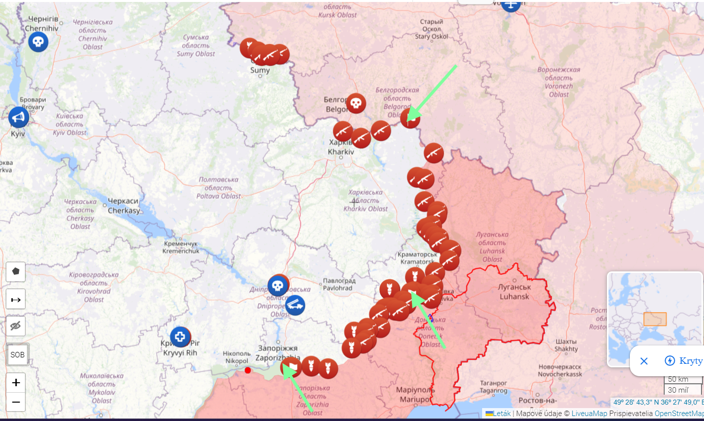 Východní Ukrajina se v těchto dnech mění v pás mohutných obranných linií, které mají zpomalit případný ruský postup. Podle informací řeckého serveru Pronews.gr začala ukrajinská armáda s výstavbou dvou souběžných pásů opevnění jižně a západně od Slavjansku a Kramatorsku, tedy v hloubce ukrajinského zázemí, které dosud představovalo hlavní logistické a velitelské centrum pro obranu Donbasu. Článek přímo přirovnává systém k historické Maginotově linii a uvádí, že „následující dny budou klíčové pro všechny“, čímž naznačuje, že se Kyjev může připravovat na možnost ústupu z některých okupovaných měst. Tato zpráva přichází v době, kdy se ruské jednotky postupně přibližují k čáře Bachmut – Časiv Jar – Toreck a zesilují tlak na sever od Horlivky.