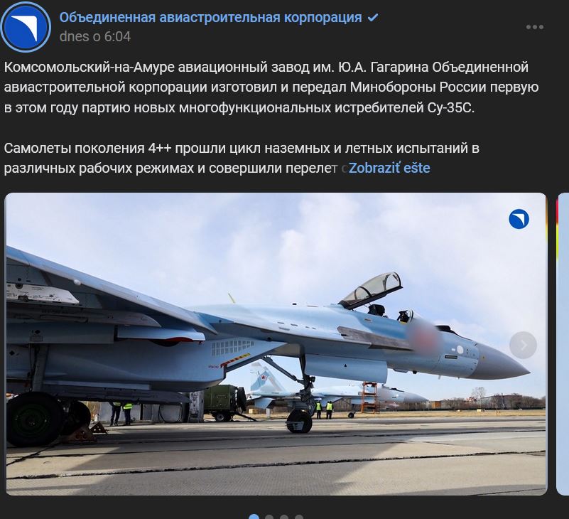 Letecký závod v Komsomoľsku nad Amurom pomenovaný po Ju. A. Gagarinovi (Комсомольский-на-Амуре авиационный завод им. Ю.А. Гагарина) zo Zjednotenej leteckej korporácie (OAK = Объединенной авиастроительной корпорации) vyrobil a odovzdal Ministerstvu obrany Ruska prvú sériu nových viacúčelových lietadiel Suchoj Su-35S (Су-35С) v tomto roku 2024. Lietadlá generácie 4++ absolvovali sériu pozemných a letových skúšok v rôznych prevádzkových režimoch a preleteli z letiska KnAAZ do miesta svojho pôsobenia ...