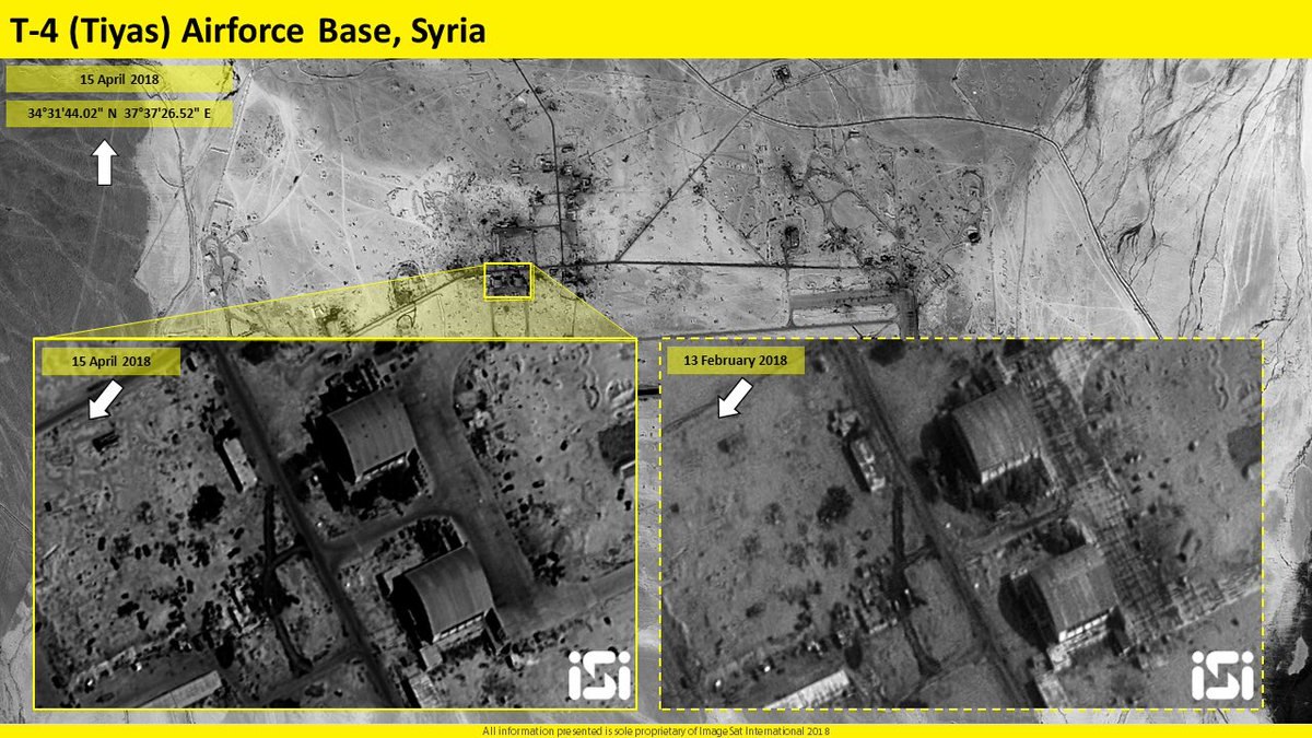 Izraelská média zveřejňují satelitní snímky syrské letecké základny T-4 před a po leteckém útoku v dubnu