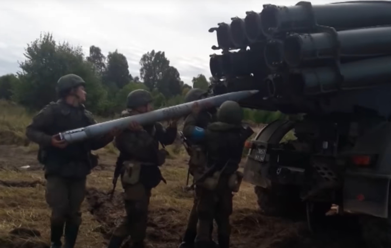 A pozor - rakety vystrelené v čase videa 1:05 sú skutočné 300mm rakety Smerč, až rakety vystrelené v čase 1:20 sú 122mm rakety Grad.