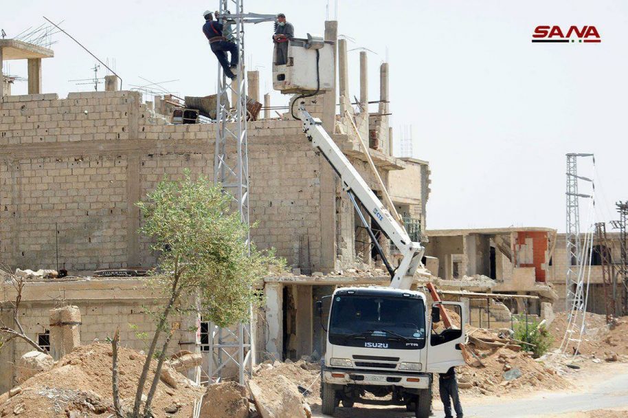 "Ministerstvo elektrickej energie v Damasku vypracovalo plán na úplné obnovenie elektrickej energie v Daraa do roku 2023. Obnova bude trvať toľko času z dvoch dôvodov: po prvé, pretože energetické siete boli vážne poškodené militantmi a po druhé kvôli nedostatočnému financovaniu, "Povedal Zamel.