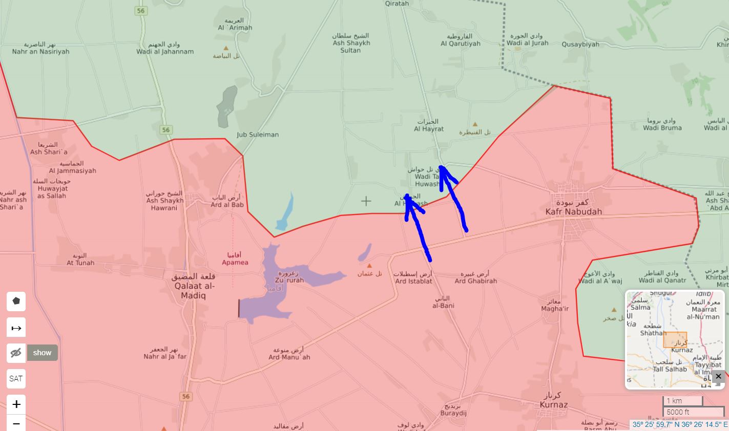 Podla tohoto tweetu by SAA mala ovladat Kafr Nabudah, Al-Karkaat, Qalaat al-Madiq, Bab al-Taqa and al-Shareeah