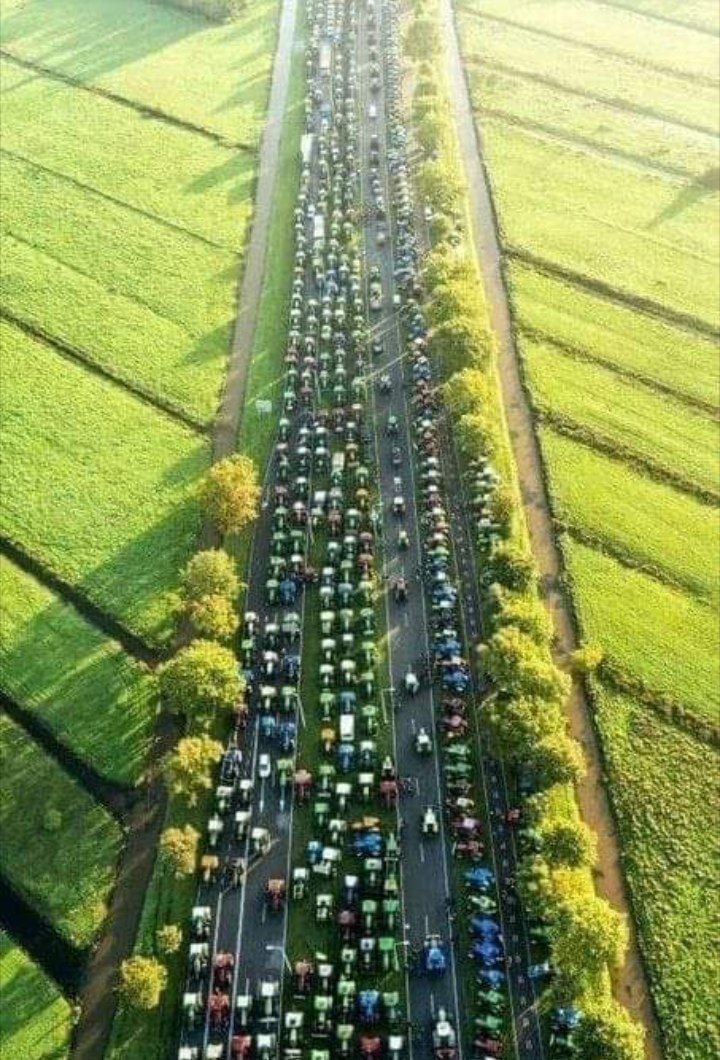 Wow! Impressive Dutch farmers‘ convoy. There are numerous road and motorway blocks underway everywhere in the Netherlands. It will be a very hot day. pic.twitter.com/CvE9WfbPoQ