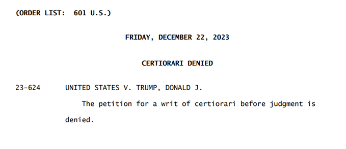 https://www.zerohedge.com/markets/supre ... nity-clashNejvyšší soud zamítl žádost zvláštního právního zástupce Smithe o urychlené přezkoumání případu proti Trumpovi. Před volbami v roce 2024 nebude v DC soud. Žádná chyba – pro zvláštního právníka je to velká ztráta.