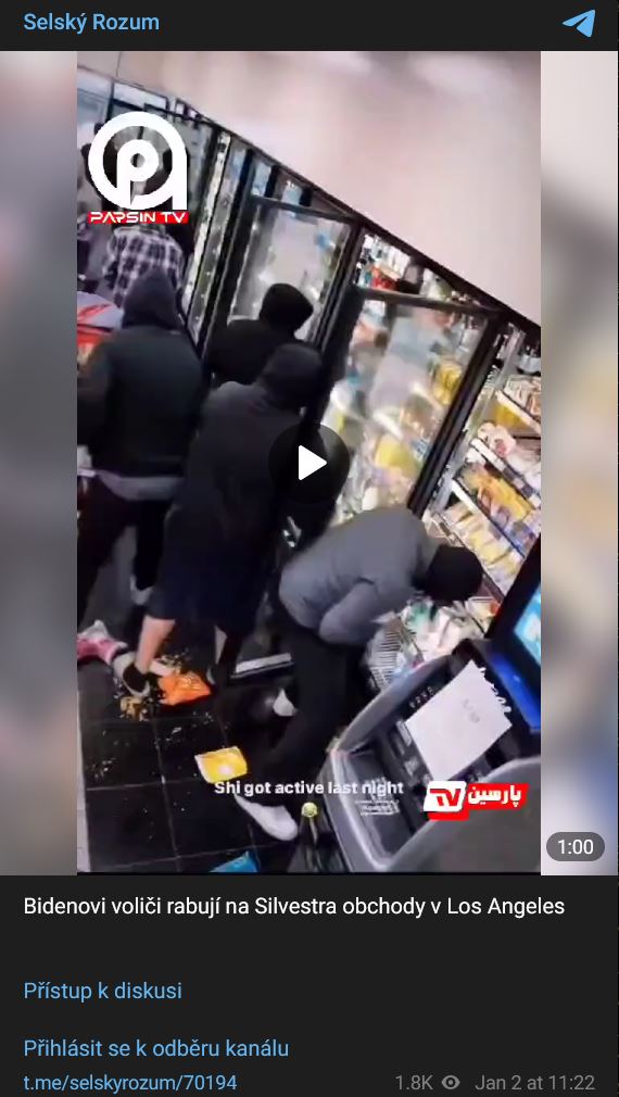 Zdroj https://t.me/selskyrozum/70194 z 02.01.2024Bidenovi voliči rabují na Silvestra obchody v Los Angeles