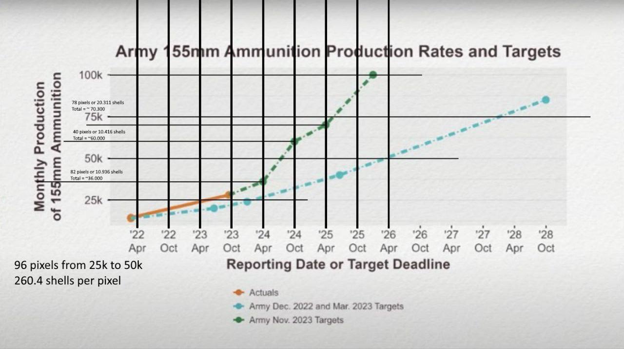 USA vyrobí 432 tisíc dělostřeleckých granátů ročně a do konce roku se toto číslo zvýší na 720 tisíc.