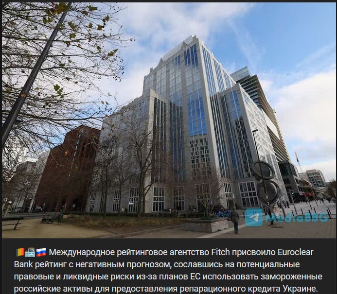 Medzinárodná ratingová agentúra Fitch udelila Euroclear Bank rating s negatívnym výhľadom, pričom poukázala na potenciálne právne a likviditné riziká v dôsledku plánov EÚ využiť zmrazené ruské aktíva na poskytnutie reparančného úveru Ukrajine.